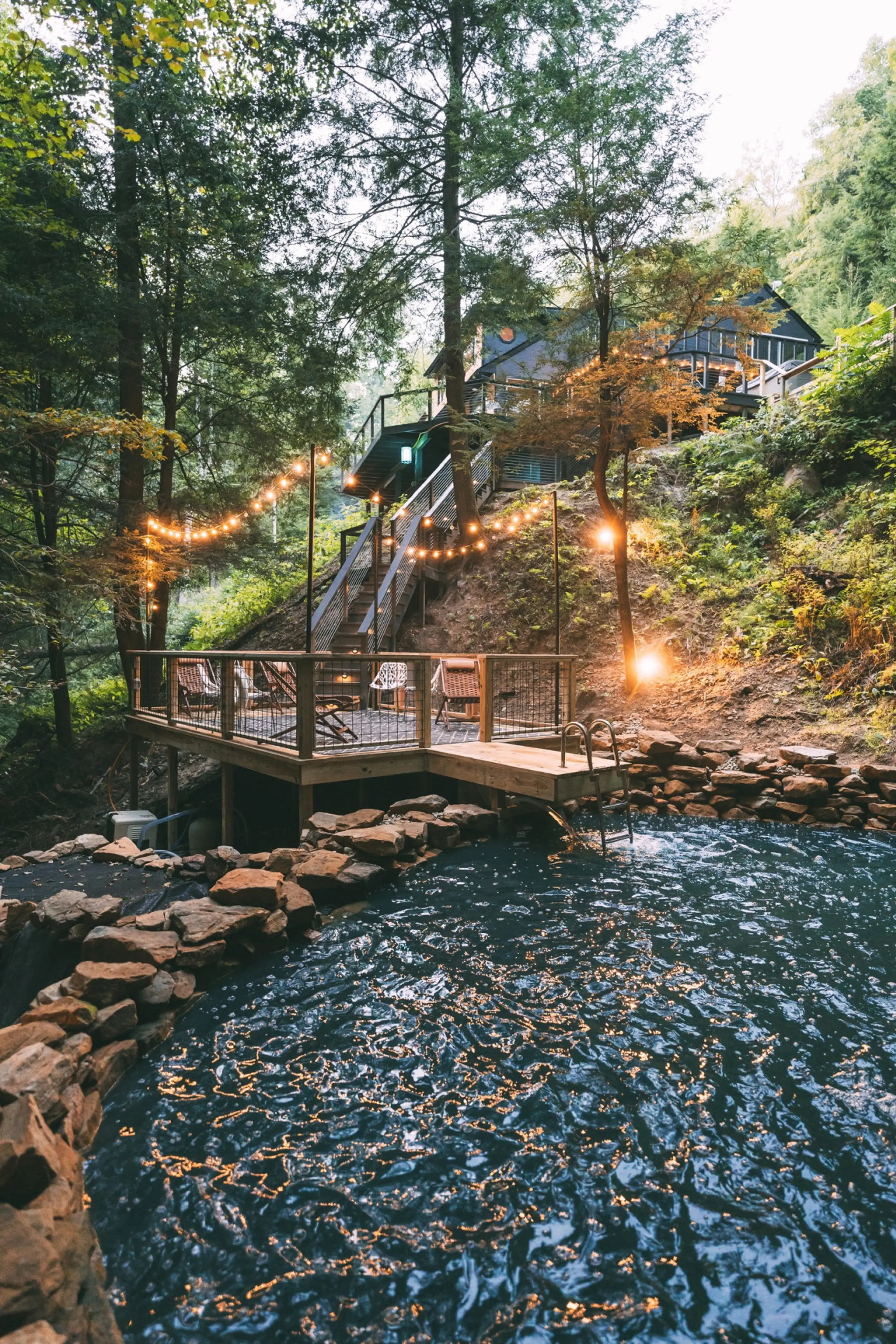“A lodge built around a waterfall, swimming hole, and space for everyone to gather”