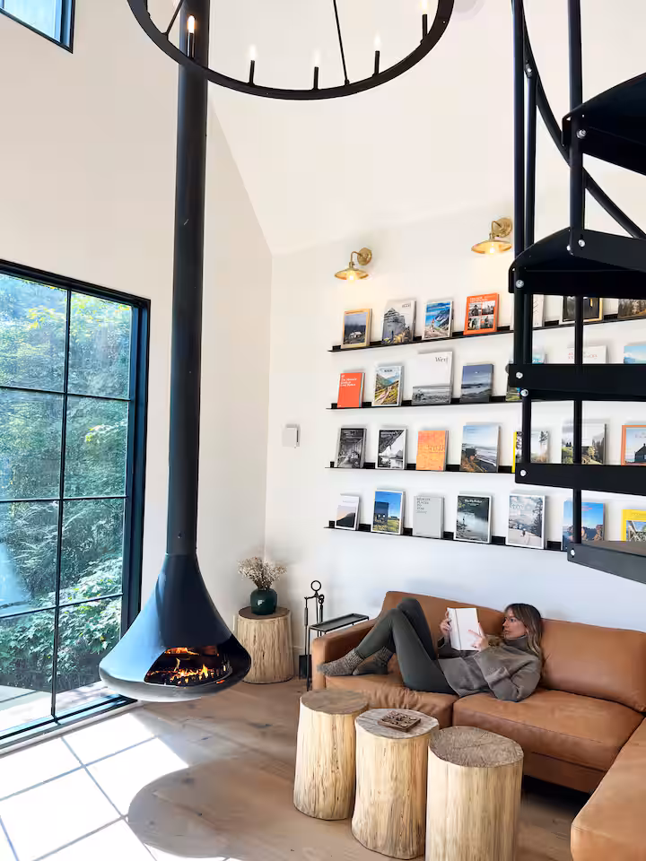 Mornings might start slowly in the hot tub, coffee in hand, watching light shift through the canopy. The cruiser bikes make it easy to explore the charming backroads into town for a meal or provisions. Evenings tend to pull attention back to the deck, or inside by the fireplace with the board games the hosts have provided. The space works equally well for focused remote work or deliberate disconnection.